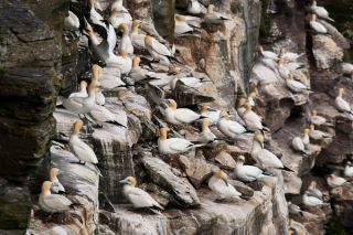 Gannet colonies are one of the most amazing sounds and sights to hear and see in the world. A visit to the towering sea cliffs with swirling gannets and the raucous sound of gannets calling is awe inspiring and creates a wealth of happy emotional feelings through out your senses.